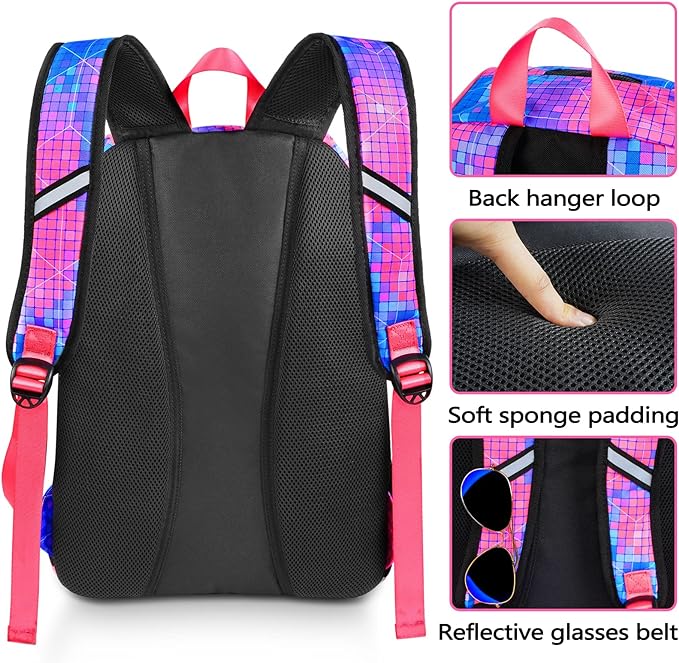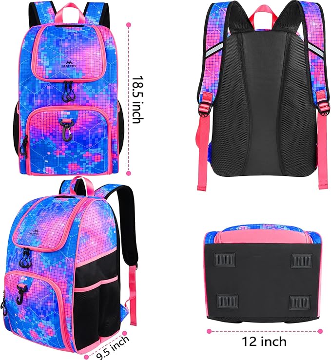 - Exquisite Design: The smooth double zipper is made of Non-slip PVC grip and sturdy nylon cord, makes the soccer backpack more convenient to use and prevent from skidding. The glasses belts on the shoulder straps ensure hanging glasses easily. And the hook on the front of the colorful soccer bag allows you to hang anything you want, such as water bottles, keys, and more accessories