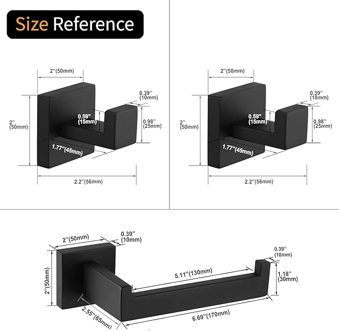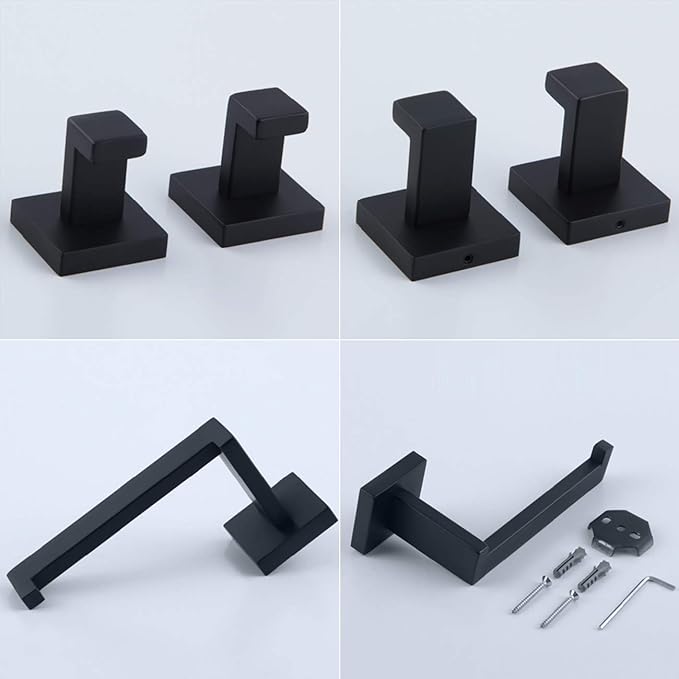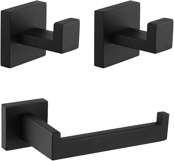 - MODERN & SAFE DESIGN - Unique SQUARE shape designed with clean lines and sturdy construction, chamfering edges protect your body from scratching, the 3-pieces bathroom accessories set provide everyday efficiency with style.