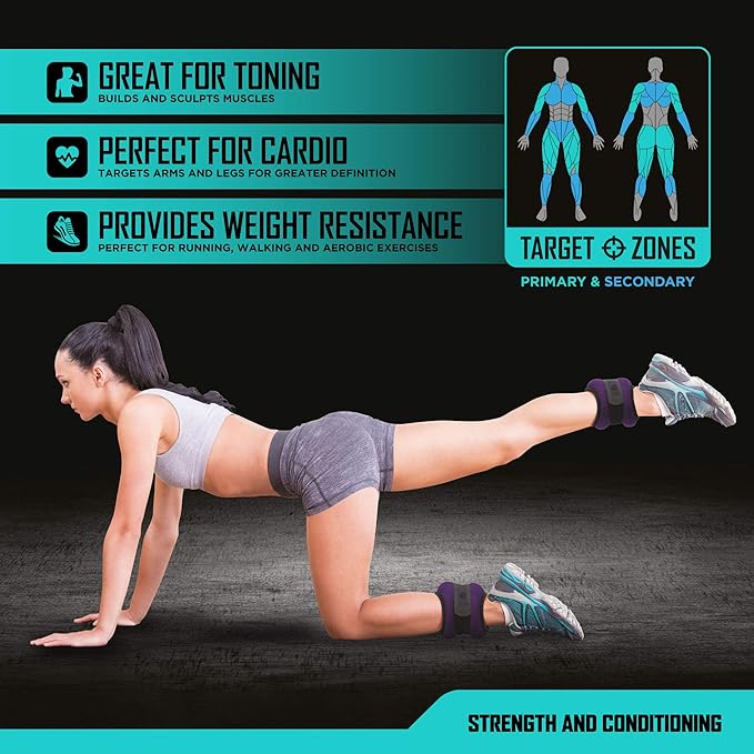 - Adjustable Ankle Weights: The RBX 1LB Ankle & Wrist Weights for Men and Women help target, strengthen, and tone specific muscle groups in your legs and arms, and can be used to add more of a challenge to your cardio workouts! Our weight set can also be used as ankle weights for kids.